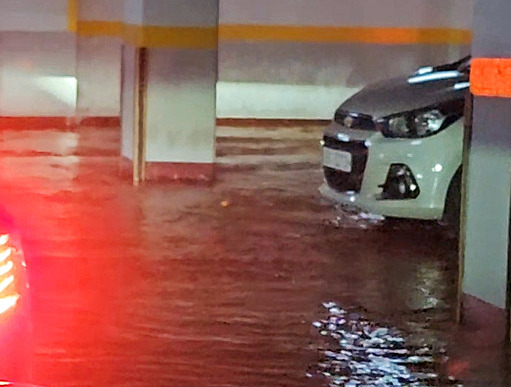 호우 특보가 발효된 3일 오후 전남 무안군 한 지하주차장이 빗물에 잠기고 있다. 2025.8.3 [사진=연합뉴스(독자 제공)]