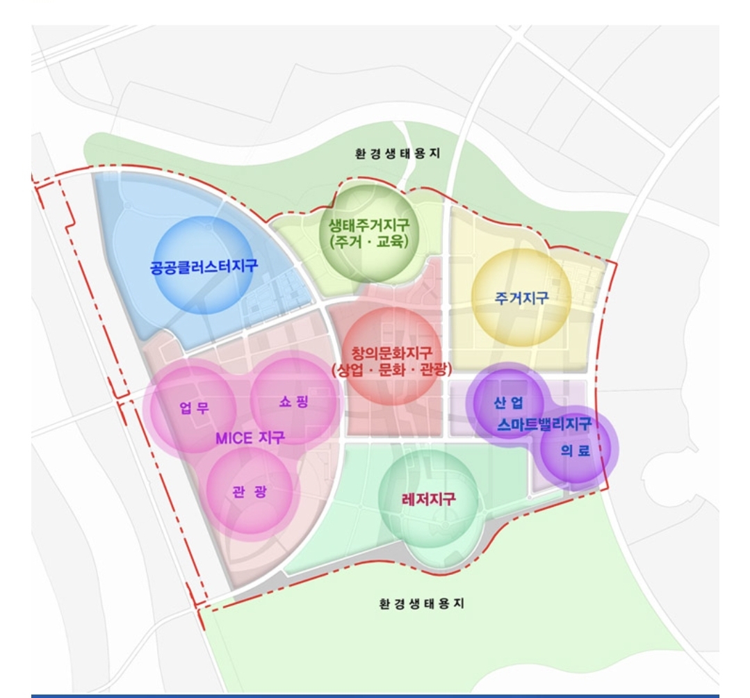 새만금 스마트 수변도시는 전통적인 토지 공급방식과는 다르게 접근하고 있다. 다른 도시처럼 공동 주택용지를 먼저 분양하는 것이 아니라 교육·의료·관광·첨단산업 같은 정주 환경의 핵심 시설을 먼저 유치해서 자연스럽게 도시가 자리 잡도록 하는 전략을 세우고 있다.