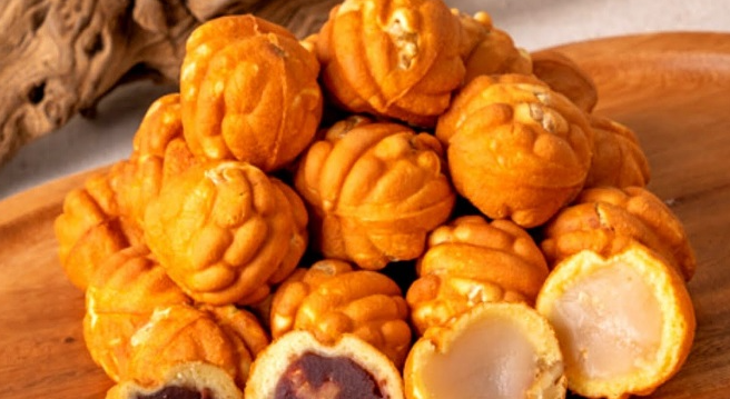 - 호두과자는 밀가루 반죽에 팥앙금(혹은 다른 소)과 호두를 넣어 만든 전통 간식입니다.