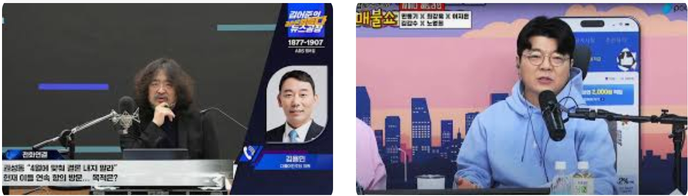 김어준의 뉴스공장은 날카로운 시사 분석과 독특한 화법으로 정치 담론을 대중화했고, 매불쇼는 풍자와 입담을 결합해 시사와 예능의 경계를 허물었습니다.