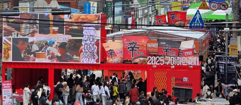 이번 축제의 흥행 폭발을 이끈 일등공신은 단연 '갓 튀긴 라면' 팝업스토어였습니다.