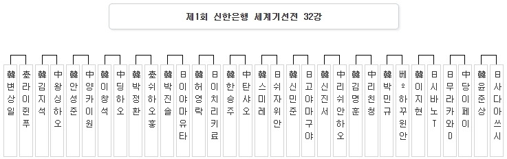 <참고> 제1회 신한은행 세계 기선전 32강 대진 및 상대 전적(왼쪽 선수 기준)