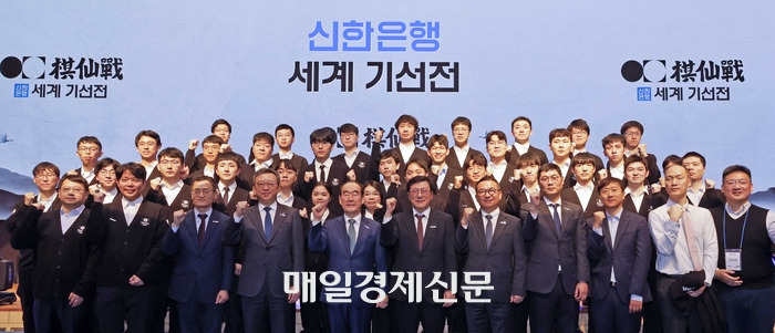 매경미디어가 주최하고 한국기원이 주관, 신한은행이 후원하는 제1회 신한은행 세계 기선전 개막식이 23일 신한은행 본점에서 열린 가운데 주요 내빈들과 선수들이 기념촬영을 하고 있다. 기선전은 ‘우승 상금 4억원’으로 주목받고 있다. 1년 주기로 열리는 세계 바둑대회 중 가장 많은 상금이다. 2025.12.23