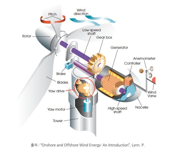 블레이드를 풍향에 따라 회전시켜 최적 방향 유지