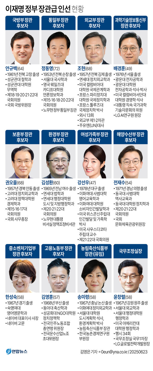 - 보수 출신 인사 유임 또는 기용(전임 정부 장관 포함)