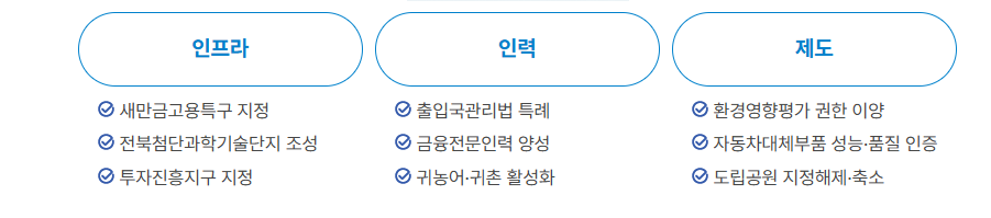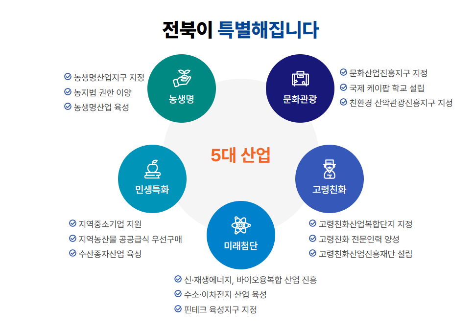 - 인프라 5대 핵심산업을 육성할 14개 전북형 지구·특구·단지 지정