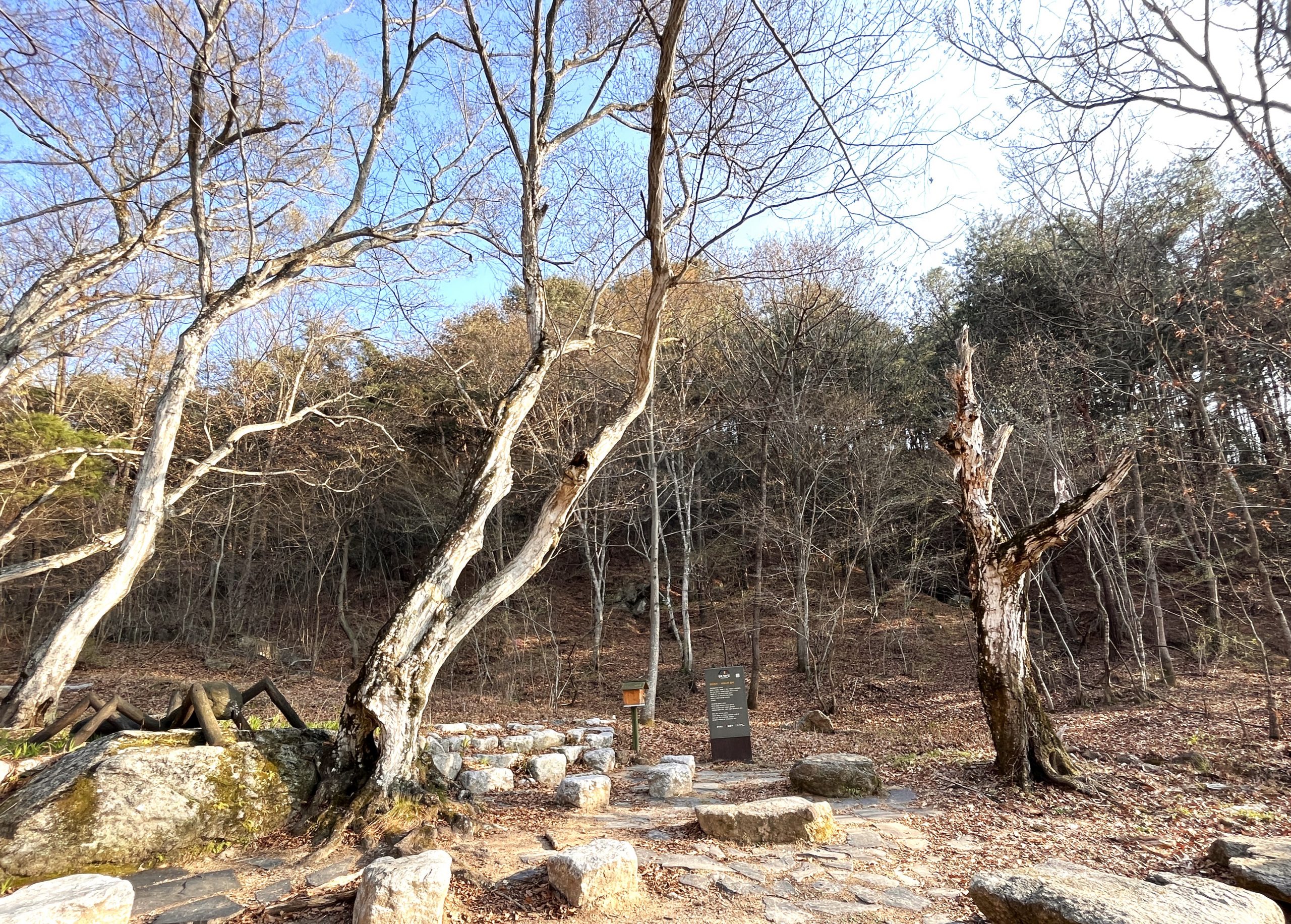 산수국 등 야생화들이 군락지를 이루는 계곡을 따라 올라가 소나무 숲길을 걷다 보면 ‘사무락 다무락’을 만난다. 사무락은 ‘소망’을 뜻하고 다무락은 ‘담벼락’을 뜻하는 말이다. 군데군데 작은 돌무더기가 있었던 곳은 무너지고 없어졌지만, 고개를 무사히 넘고자 하는 그 바램만은 여전히 같을 것이다. 근처에 있는 노송과 벅수(51번)가 예전 사무락다무락 이었음을 알려준다