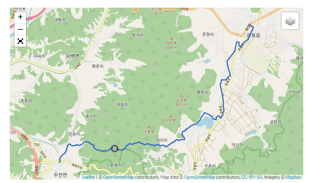 있습니다. 숲길구간인 내송마을에서 회덕마을까지 울창한 소나무숲이 일품인 5km를 걸은 후 구룡계곡으로 방향을 잡습니다.