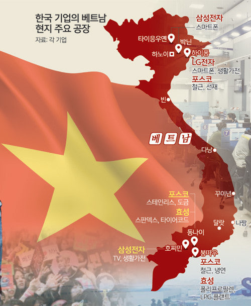 진출 현황베트남은 매력적인 투자 환경과 높은 성장 잠재력을 바탕으로 한국 기업의 주요 진출 국가 중 하나입니다.2024년 10월 기준, 베트남 기획투자부(MPI)에 따르면 한국 기업의 베트남 내 프로젝트 수는 총 10,060개이며, 누적 투자액은 약 874억 3천만 달러에 달합니다이는 베트남 전체 외국인 직접 투자(FDI) 규모에서 가장 큰 비중을 차지합니다.주요 진출 분야■ 제조업섬유·의류, 신발, 전자제품(특히 스마트폰 부품), 자동차 부품 등 노동 집약적 및 기술 집약적 제조업 분야에서 한국 기업의 투자가 활발합니다. 삼성전자, LG전자 등 대기업을 중심으로 대규모 생산 기지를 구축하여 글로벌 공급망의 중요한 축을 담당하고 있습니다. ■ 서비스업유통(롯데마트, 이마트 등), 금융(신한은..